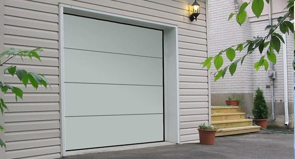 La porte de garage sectionnelle latérale fonctionne sur le même principe que la sectionnelle classique, mais les panneaux se déplacent le long d’un rail au sol et au plafond, en coulissant sur un côté du garage.